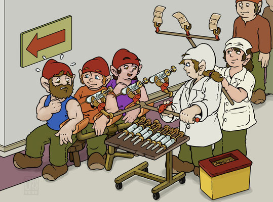 Die Schneepocken sind im Wichteldorf ausgebrochen und deshalb werden alle Wichtel so schnell wie möglich geimpft.