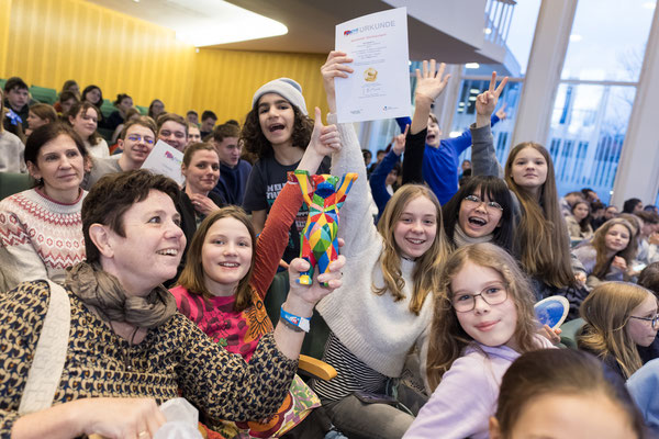 Trotz des Bahnstreiks konnten wir am 26. Januar in Berlin mit 750 Gästen feiern. Die Hauptpreise, Wichtelpreise, Klassen- und Schulpreise wurden in einer 2-stündigen Mathe-Show verliehen. Auf dem Mathe-Bazar im machte besonders der Stand von mintmagie Spaß. Die Fotos sind in unserem Dropbox-Ordner zu finden.